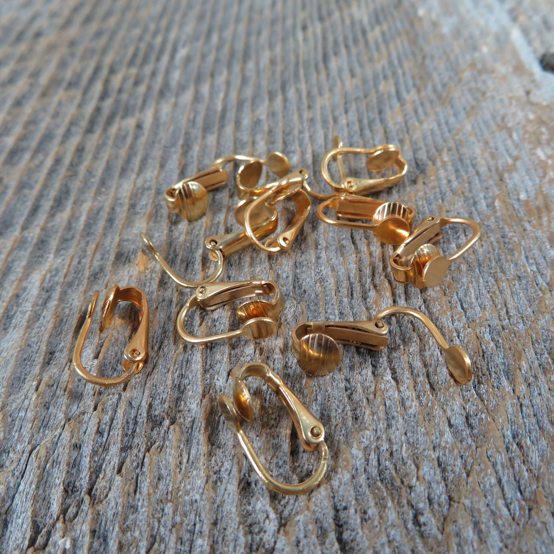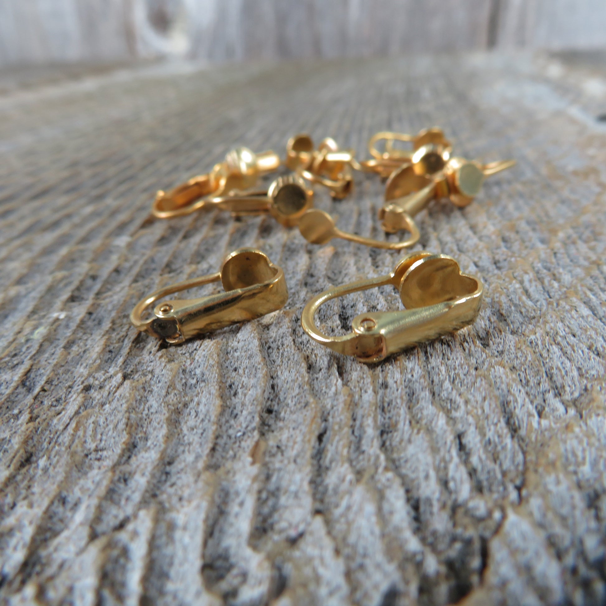 Don't have pierced ears? Or maybe have customers, family, or friends that don't? Make your own beautiful earrings with these gold tone lever back clip on earring findings. Also, great for repairing older vintage earring pieces as well. 5mm pad for attaching your pieces to.