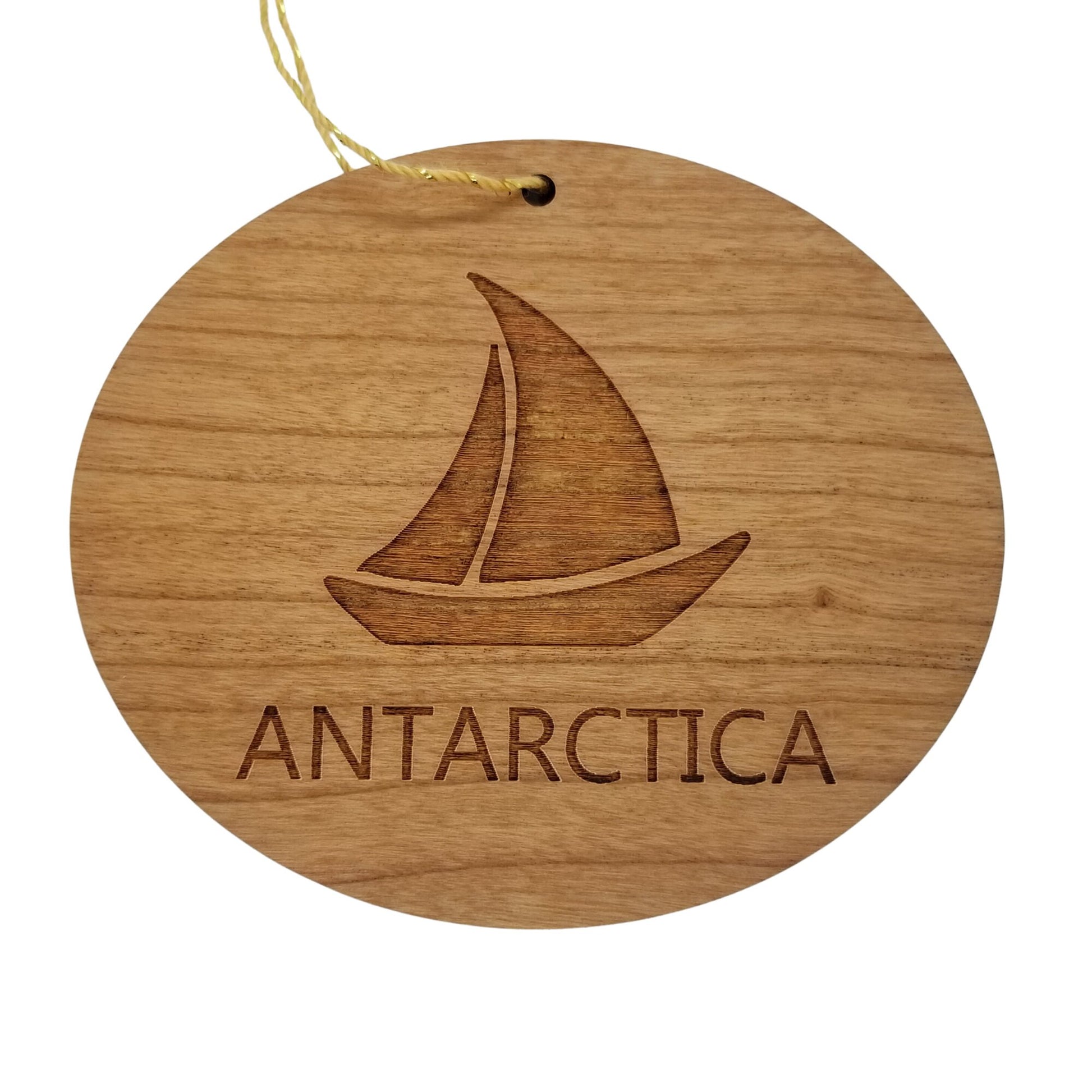 Antarctica Ornament - Handmade Wood Ornament - Souvenir Sailing Sailboat - Christmas Ornament 3 Inch