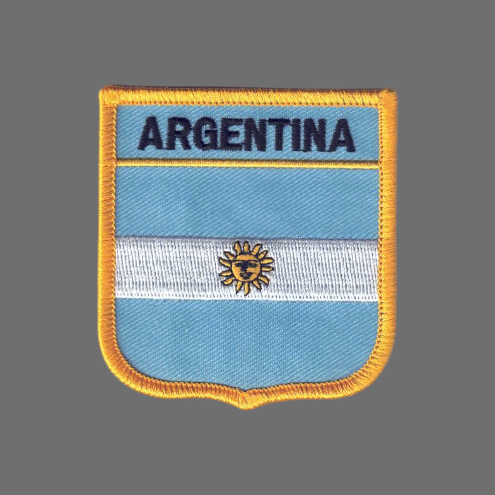 6011 - ARGENTINA Medium Country Flag Shield Uniform or Souvenir Patch, Badge, or Emblem. (Text color may vary as shown in photos.)