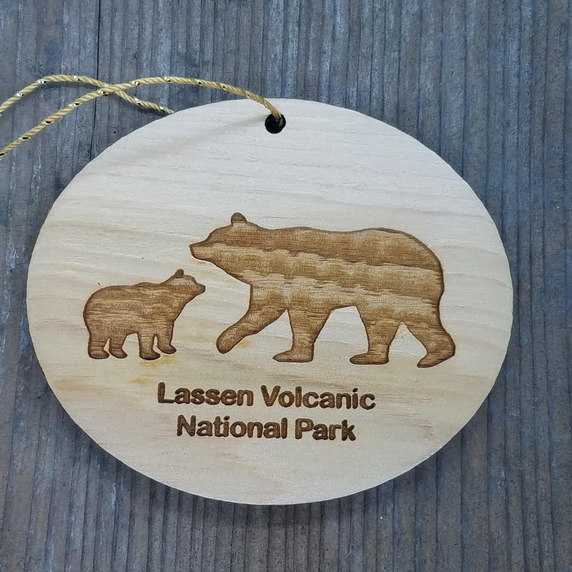 Bear and Cub Lassen Volcanic National Park Souvenir Christmas Ornament Handmade Wood Ornament Collectible Cedar