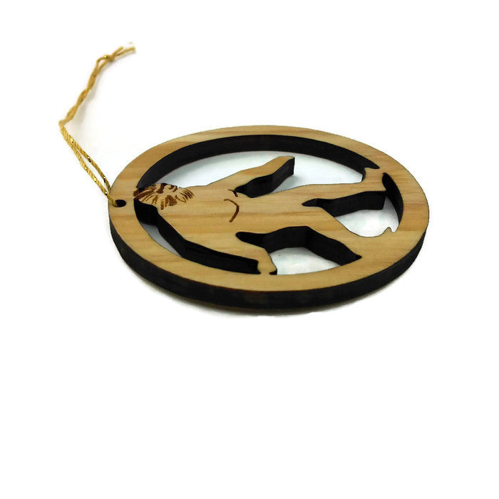 Handmade Wood Bigfoot Sasquatch Christmas ornaments made out of the white wood of California Redwood here in California and are approximately 3" x 2.375" x .25" thick.