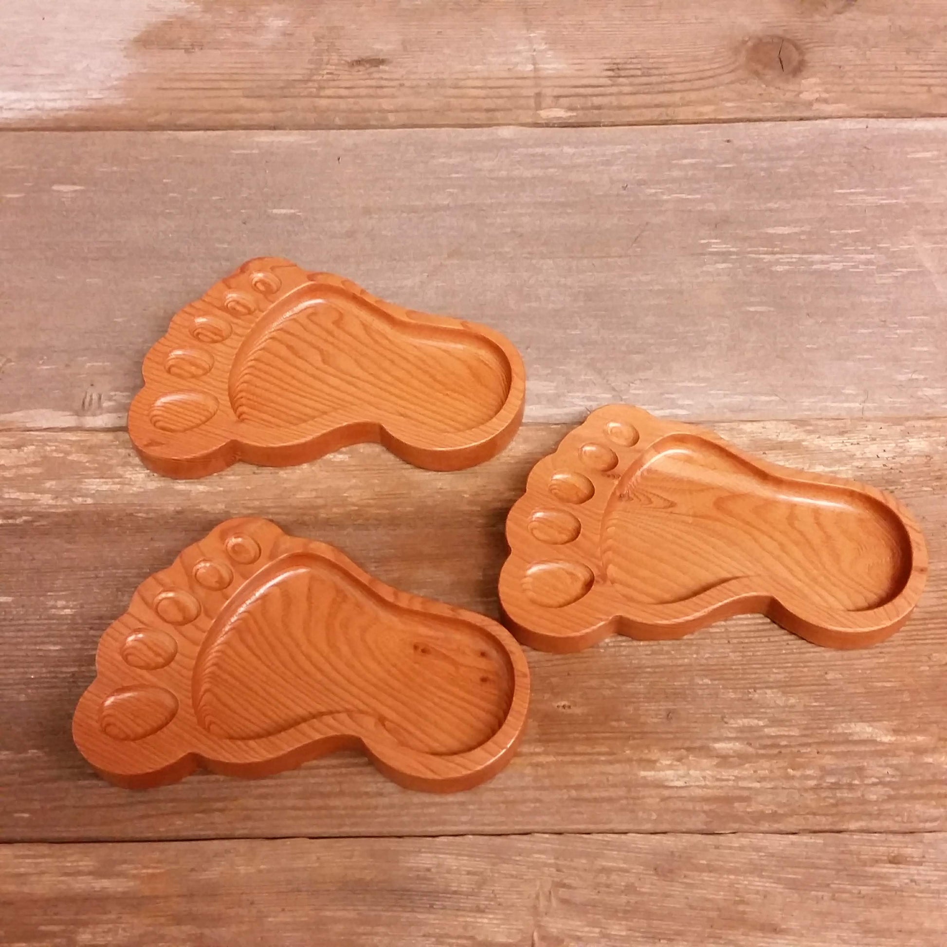 These little Big Foot trays are made here in Northern California in our little father and daughter wood shop out of California Redwood for all of those Bigfoot believers or as a fun gift for men. Great for a few pieces of candy, coins on the nightstand, etc.