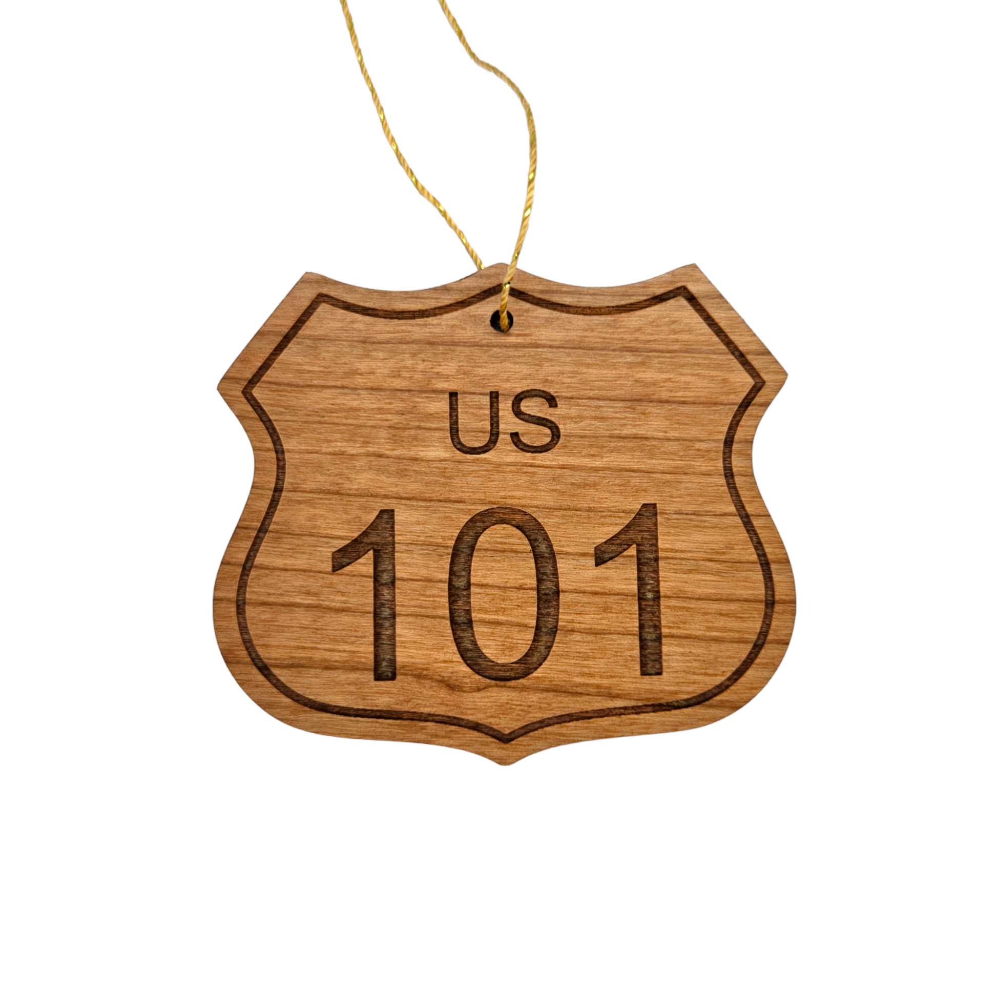 US Highway 101 Wood Christmas Souvenir Ornament Handmade Text says US 101