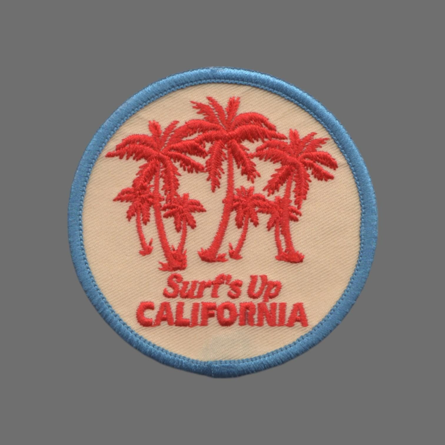 CA State Patch or Applique. Text says Surf's Up California and depicts palm trees.