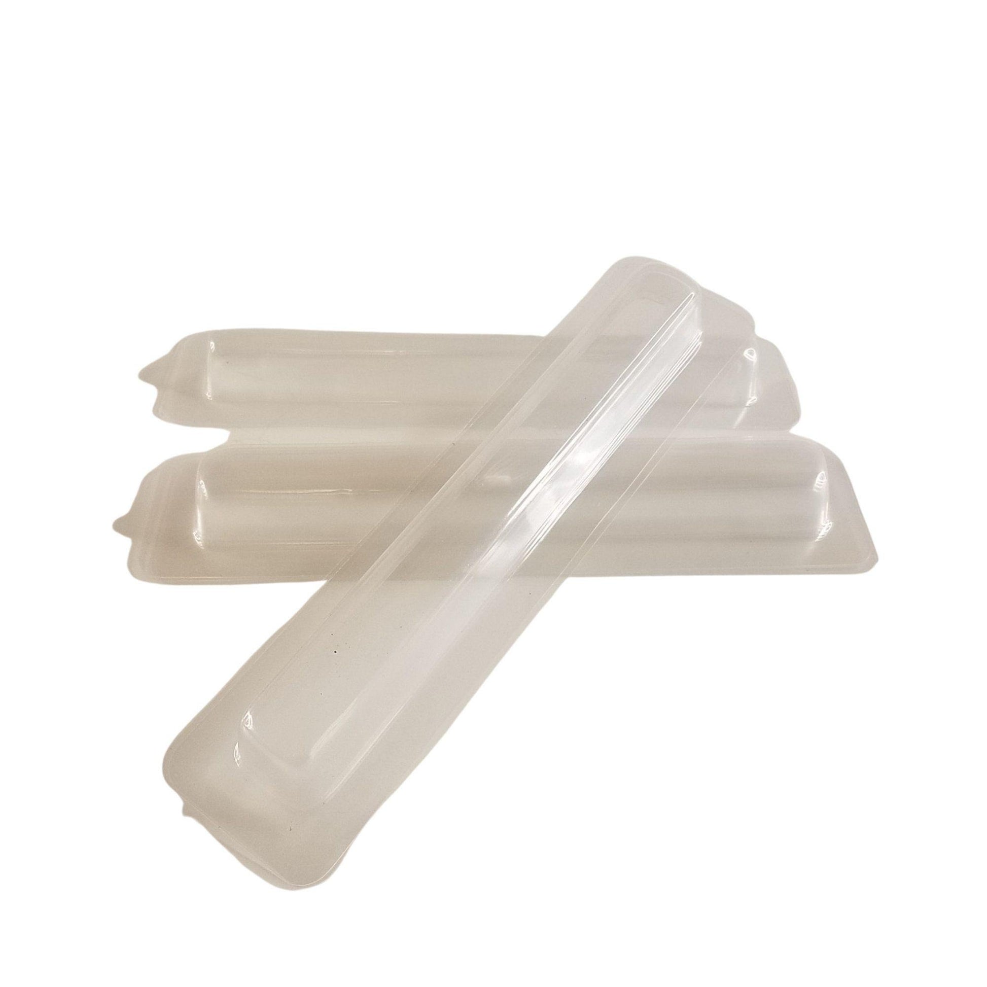 This set of 10 clock hand protectors are just what they sound like: A Piece of molded plastic that protects clock hands. Whether you make clocks and ship them or transport them and struggle to protect the hands from getting bent in transit, or maybe you're moving and don't want to take your clock hands apart, these are a great solution. You simply group all of your clock hands together, set this plastic "bubble" over the hands, and tape the plastic protector to the clock. (We recommend only using small pieces of tape just to hold the protector in place while you wrap the clock.)