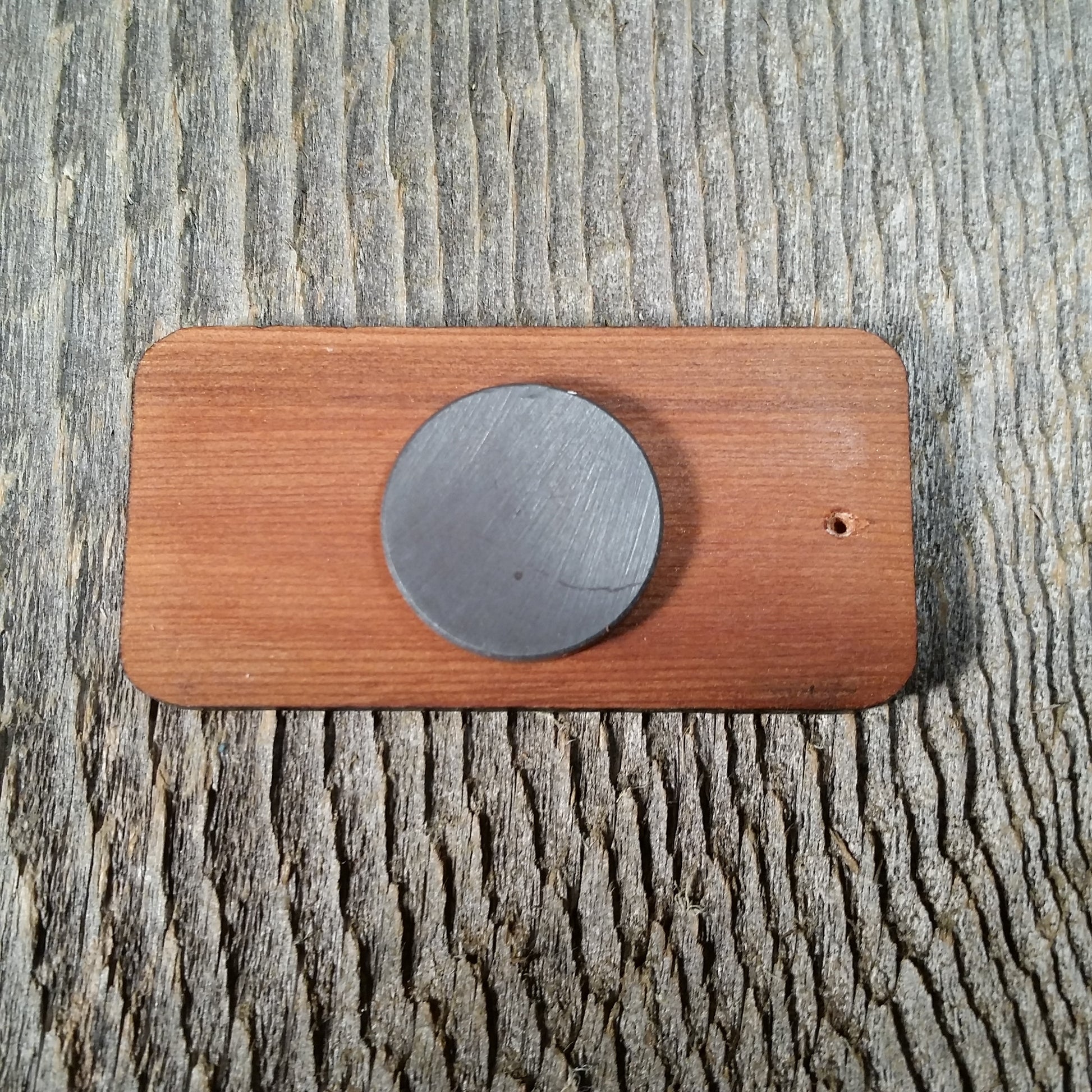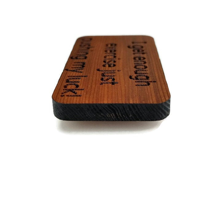 Our Humorous Exercise Handmade Magnets are made out of wood here in Northern California and are approximately 2.75" x 1.25" x .15" thick. Magnet hardware may vary.