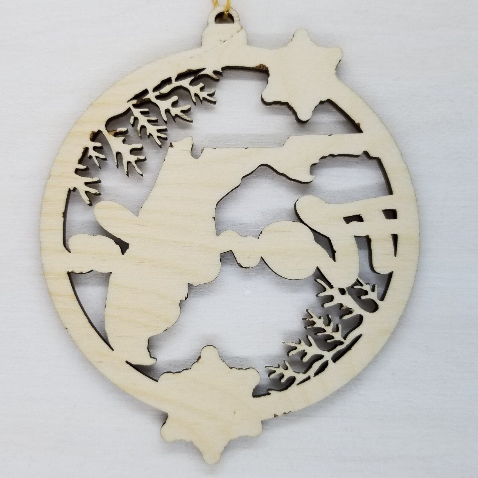 Our Christmas ornaments are sanded, and then the design is cut out by laser, re-sanded by hand, and then, strung by hand. Please note there may be black and or brown marks on back of ornament due to the cutting process.