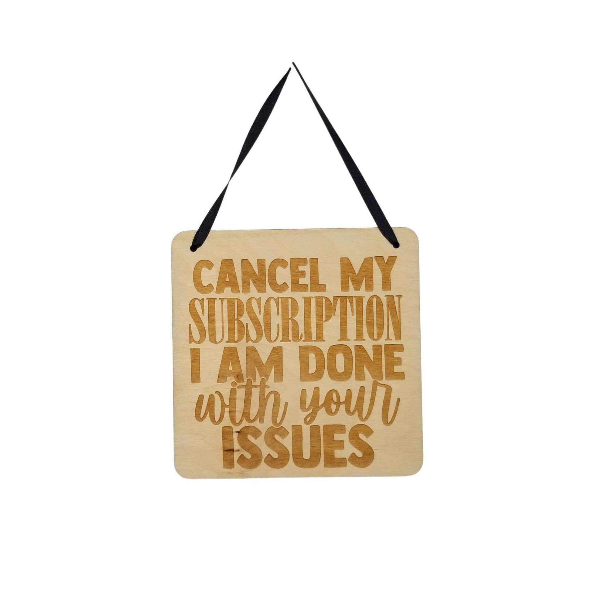 Funny Sign - Cancel My Subscription I Am Done With Your Issues Sign - Hanging Sign - Office Sign Sarcastic Humor Snarky Wood Plaque Engraved
