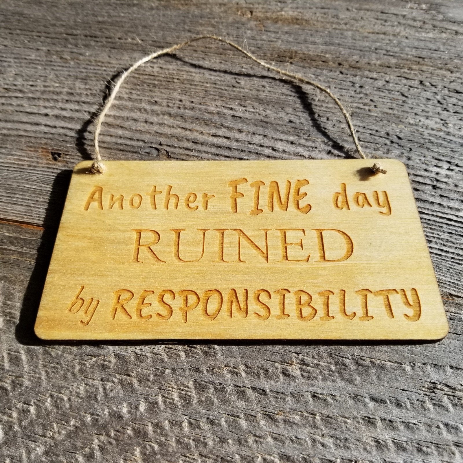 Funny Wood Sign - Another FINE day Ruined By Responsibility - Rustic Decor - Funny Signs - Indoor Sign - Office Sign - Coworker Gift Sarcasm
