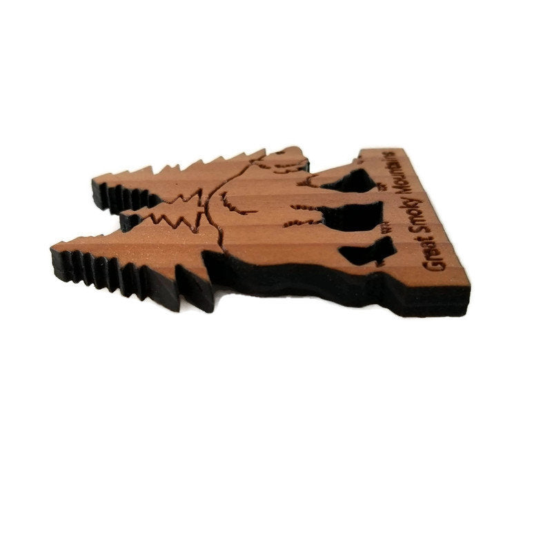 Great Smoky Mountains Bear and Trees Wood Refrigerator Magnet Made in USA Handmade Souvenir