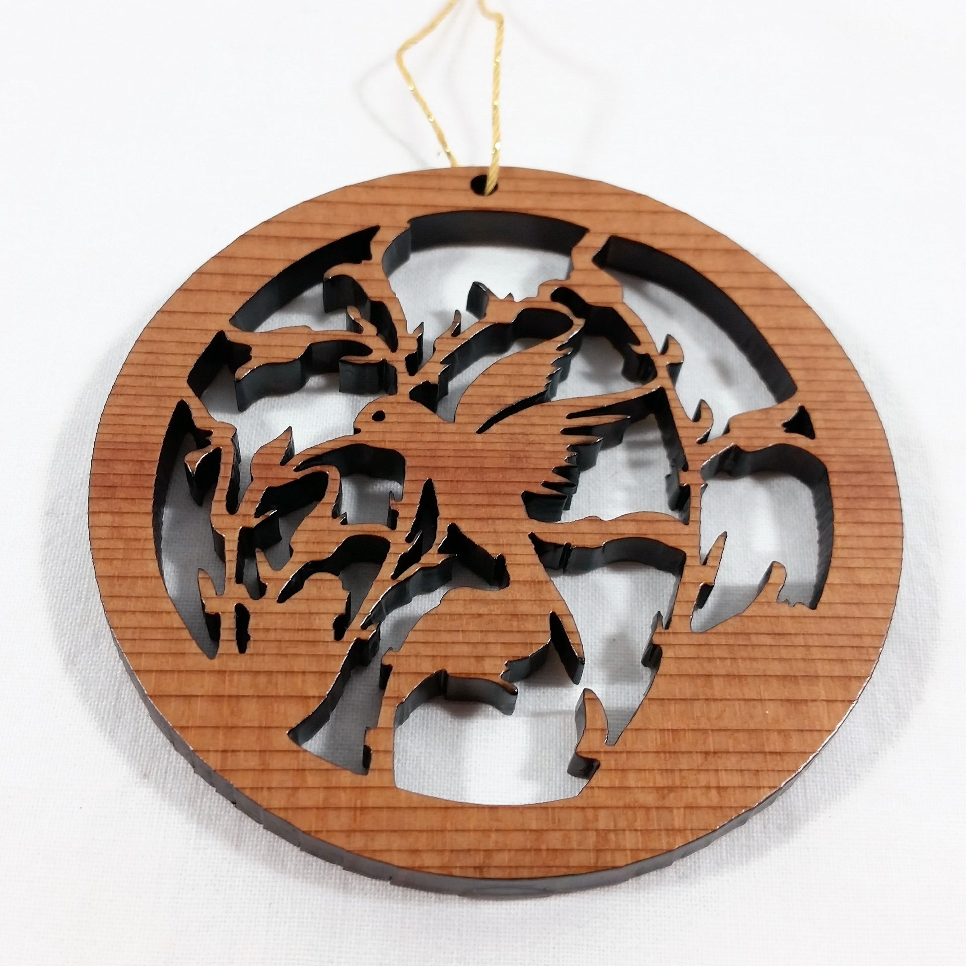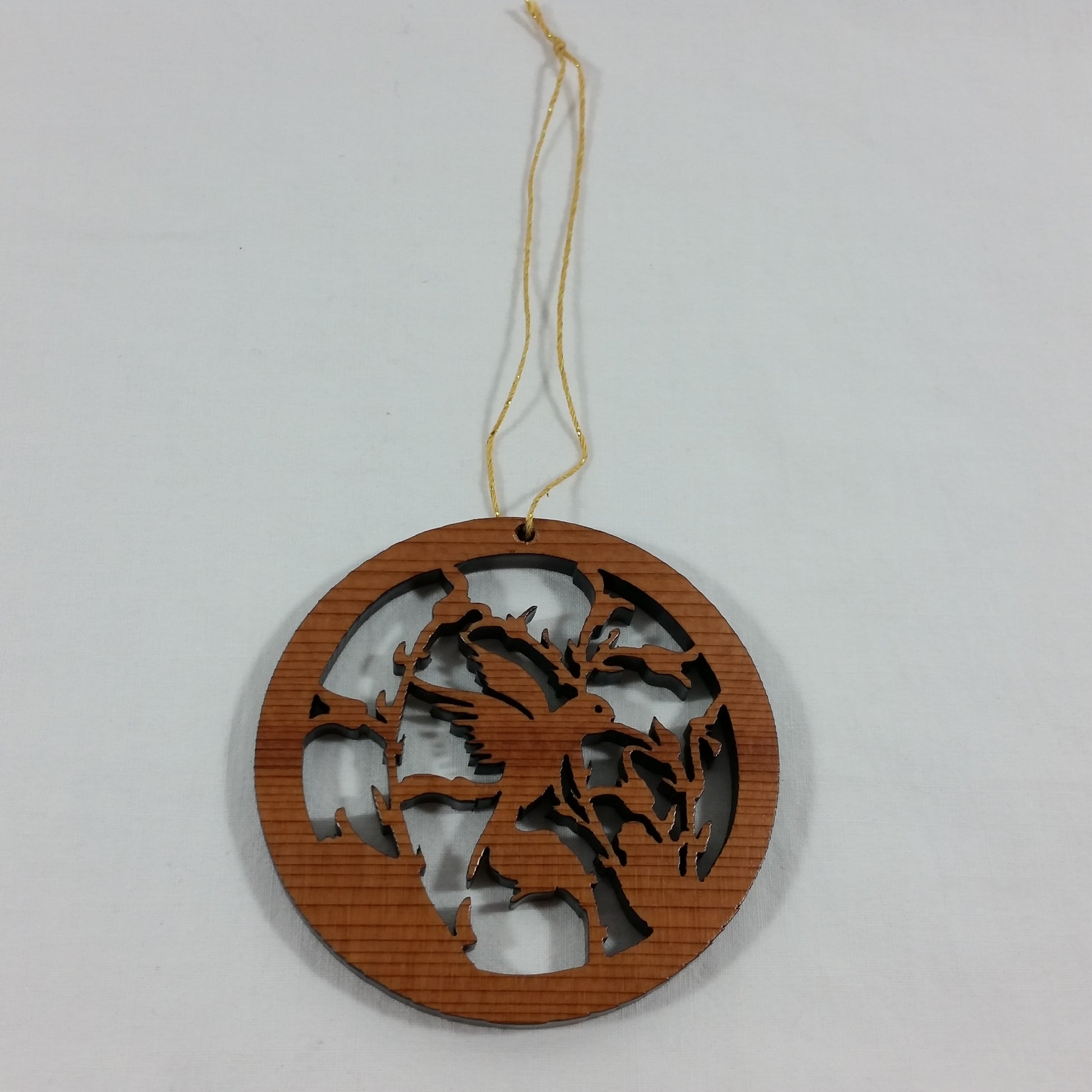 Hummingbird Christmas Ornament Redwood Wood Handmade USA