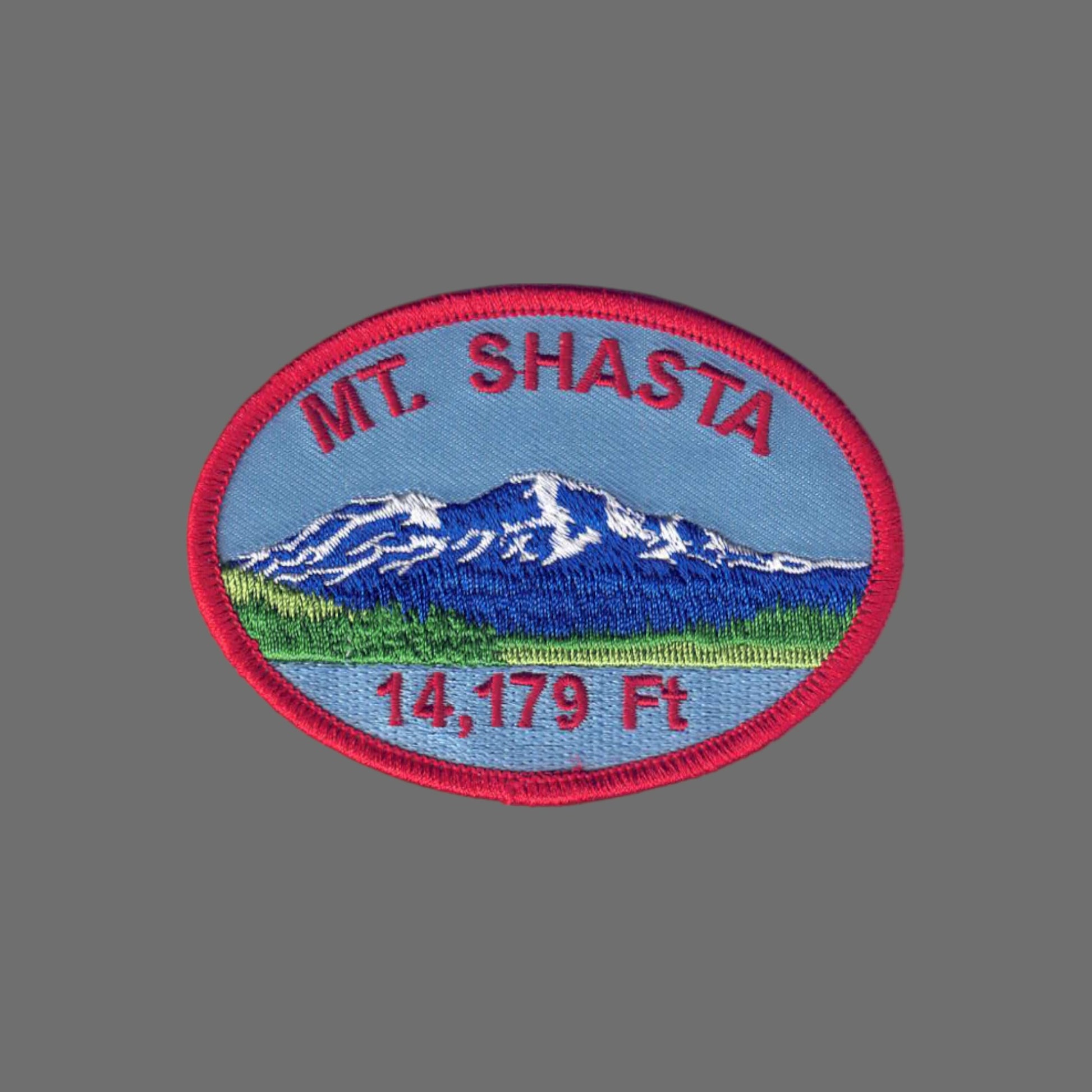 4812 - MT. SHASTA 14, 179 Ft - Embroidered Iron On Souvenir Patch, Badge, or Emblem Oval Shape.