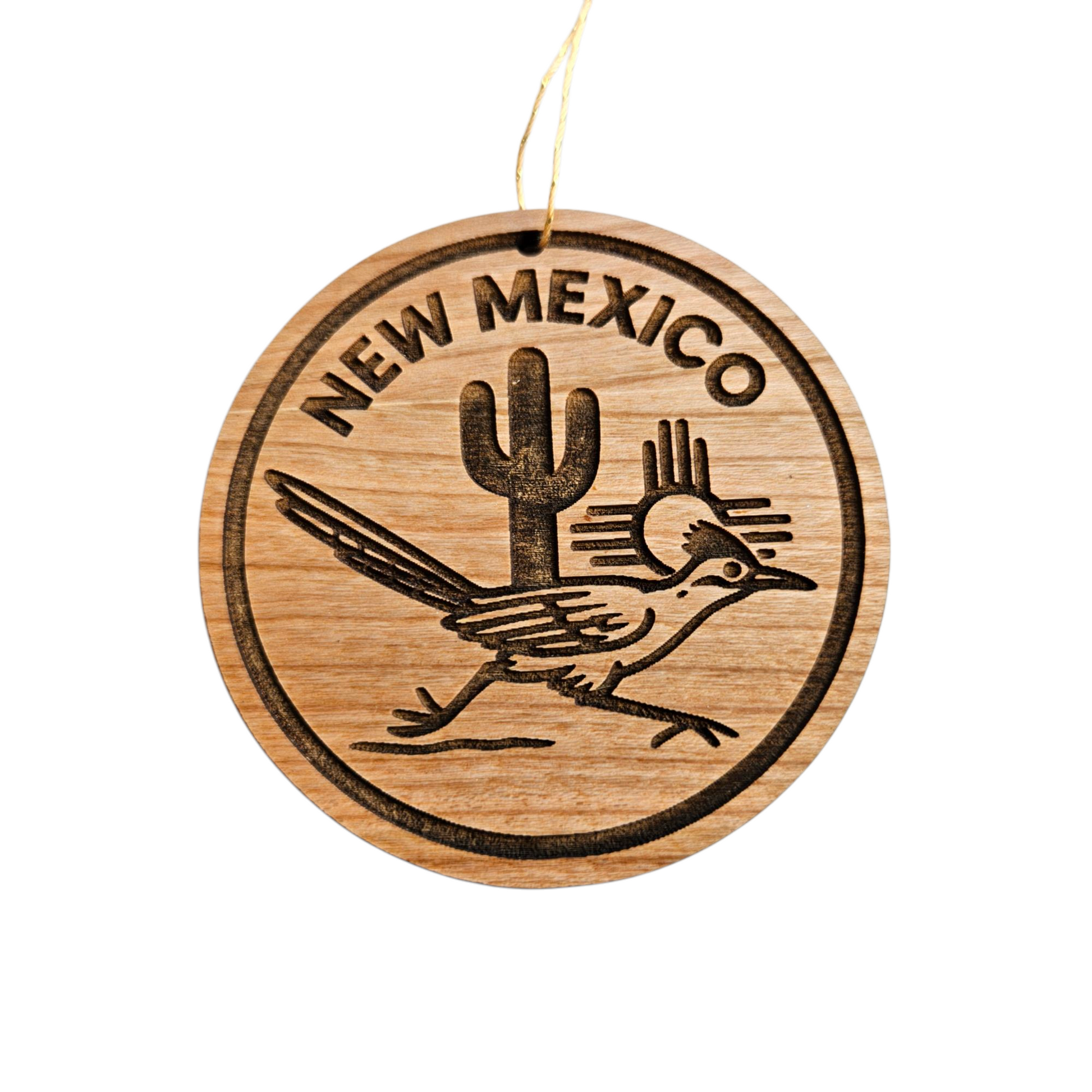 New Mexico Wood Ornament - NM Roadrunner Cactus Zia - Handmade in USA - 15797