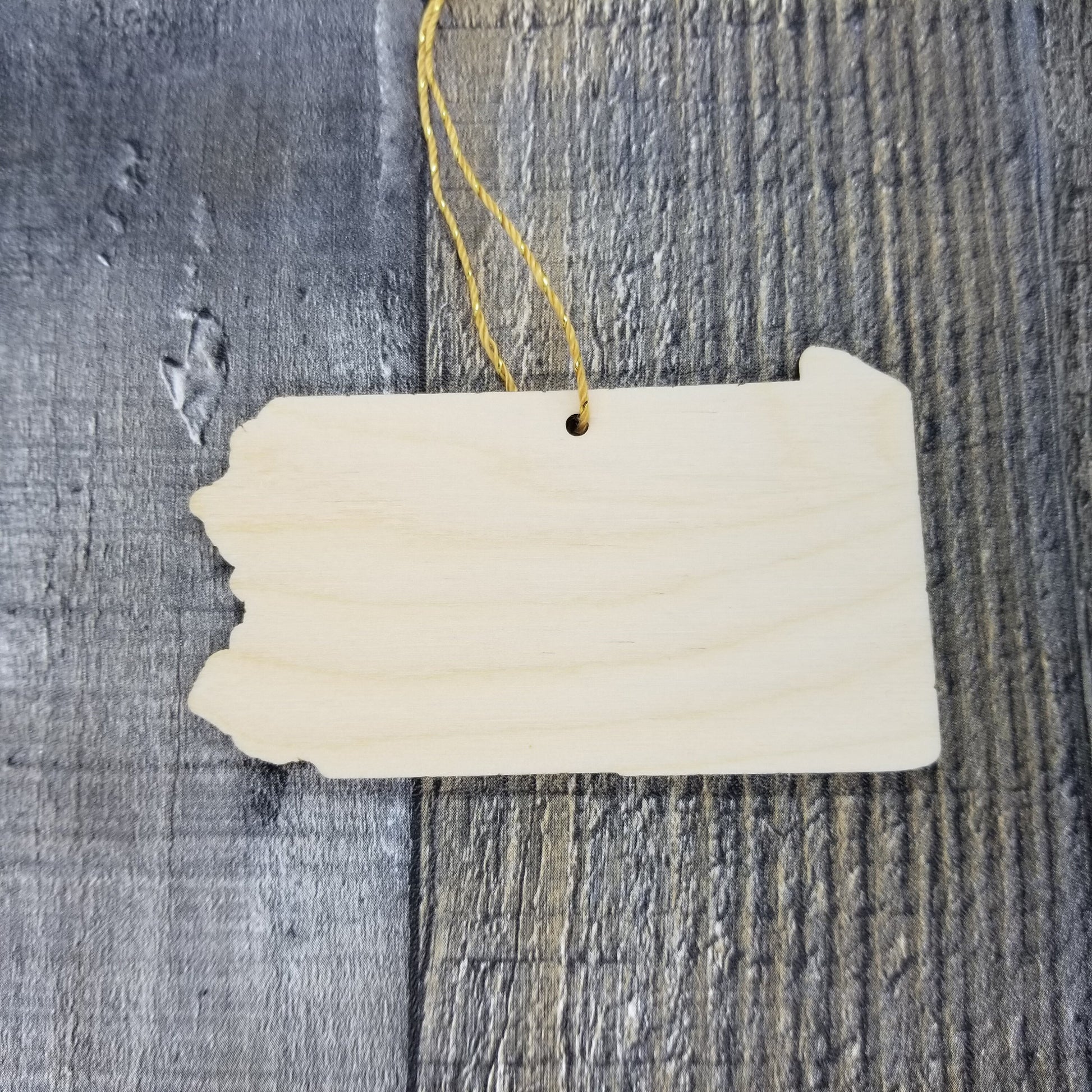 Pennsylvania Wood Ornament - PA State Shape with State Motto - Handmade Wood Ornament Made in USA Christmas Decor