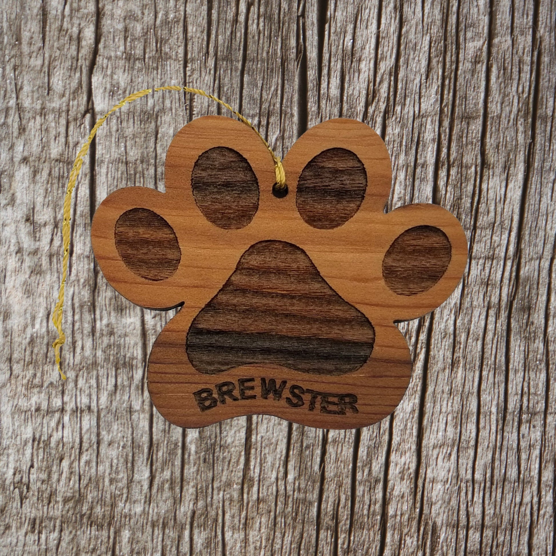 Personalized Paw Christmas Ornament California Redwood Made in USA - Pet Ornament