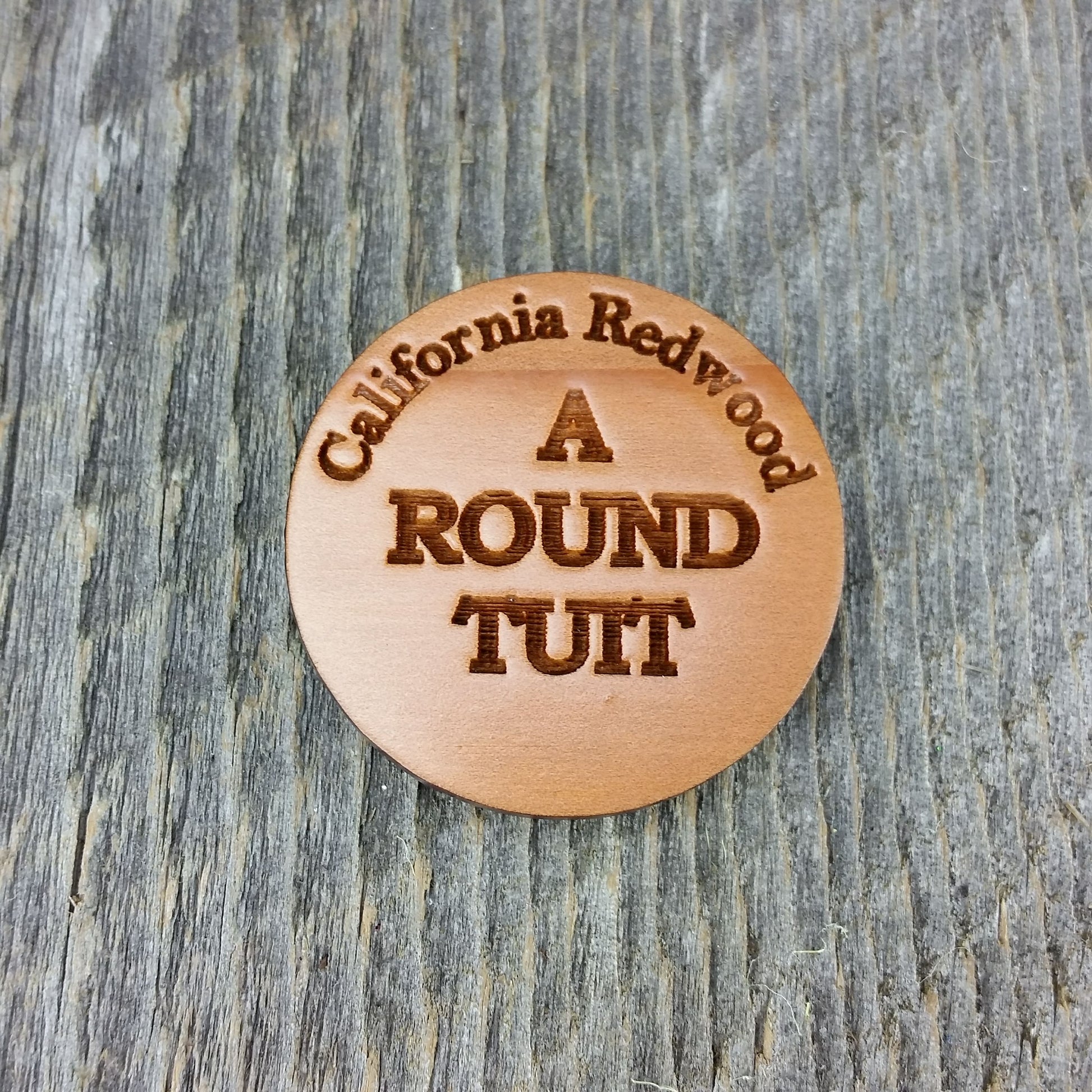 Round Tuit Magnet Handcrafted Wood Souvenir California Redwood Handmade in USA - M2207