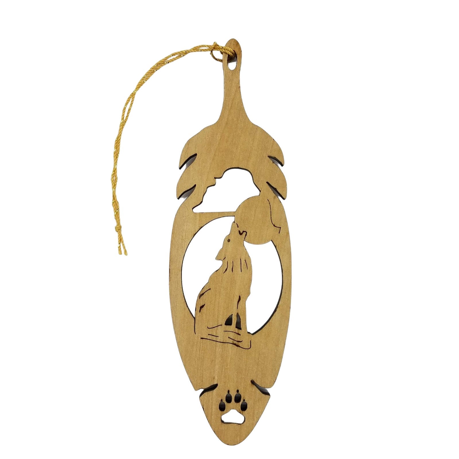 Talkeetna Alaska Wolf Christmas Ornament Wood Laser Cut Handmade in USA 5.5" - Wolf Lover Gift