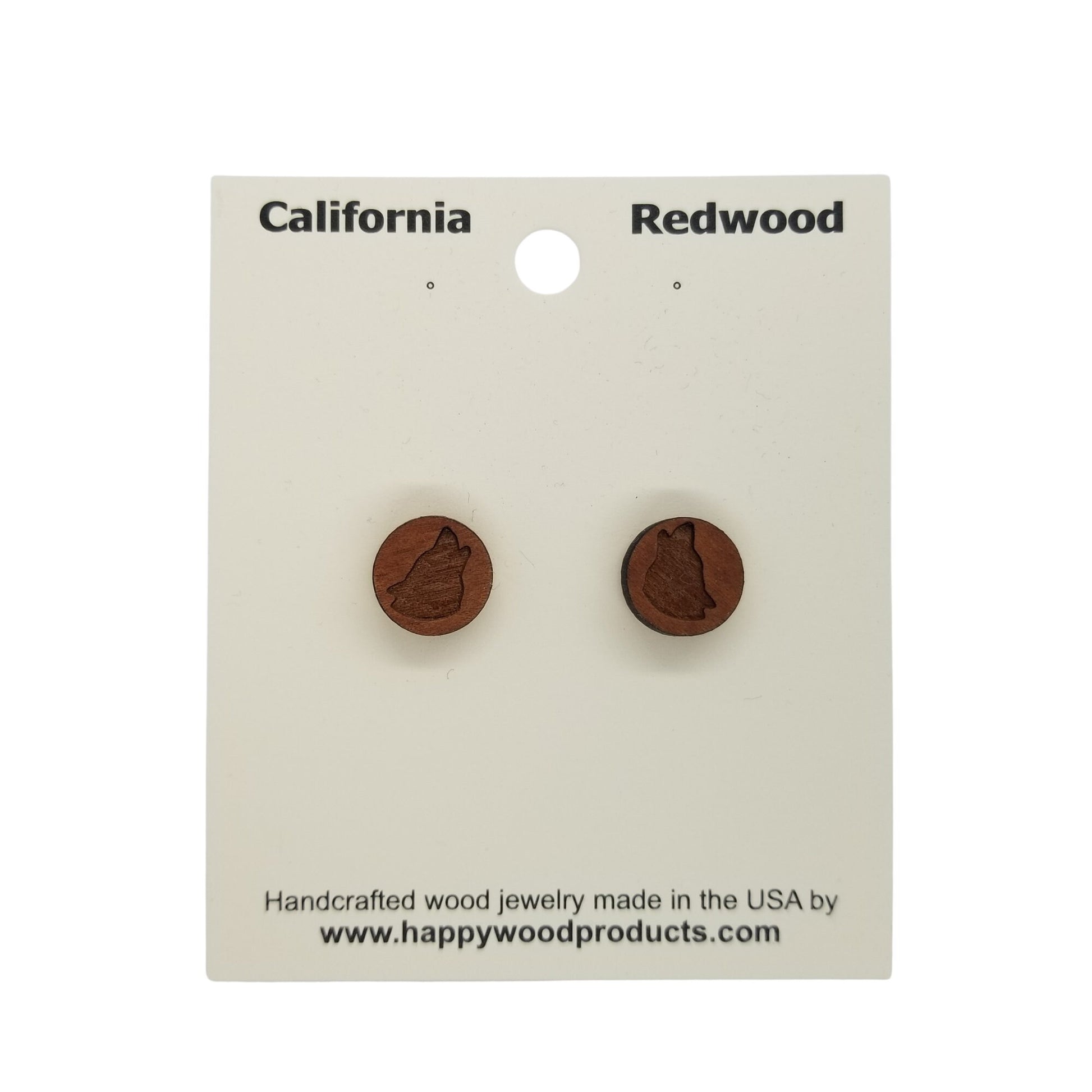 Wolf Earrings - Wood Earrings - California Redwood Stud Earrings - CA Souvenir Keepsake - Post Earrings - Wolf Head Howling