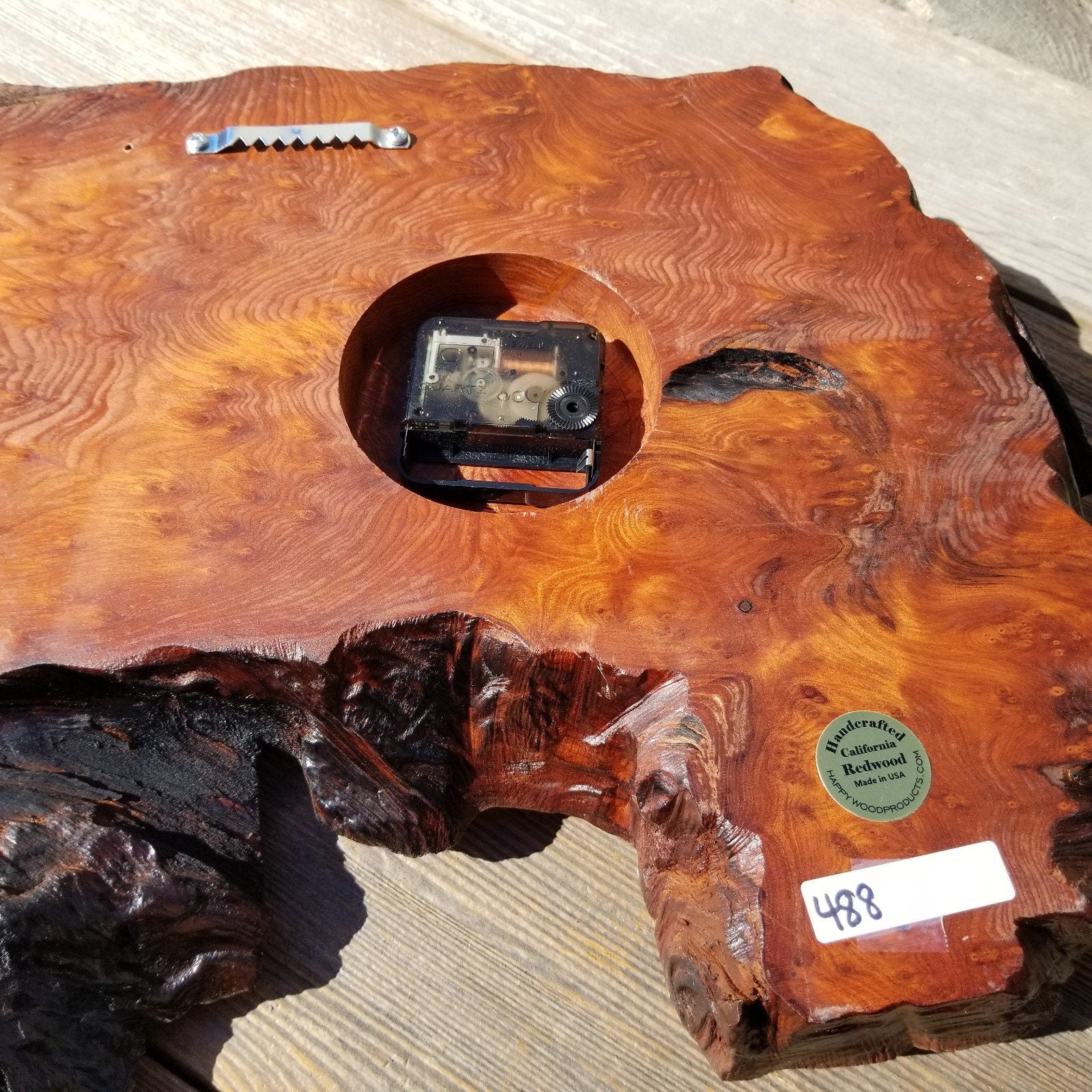 Wood Wall Clock Handmade Wall Hanging Rustic Redwood Burl Clock #488 Wedding Gift Father's Day Gift Unique Christmas Gift LG