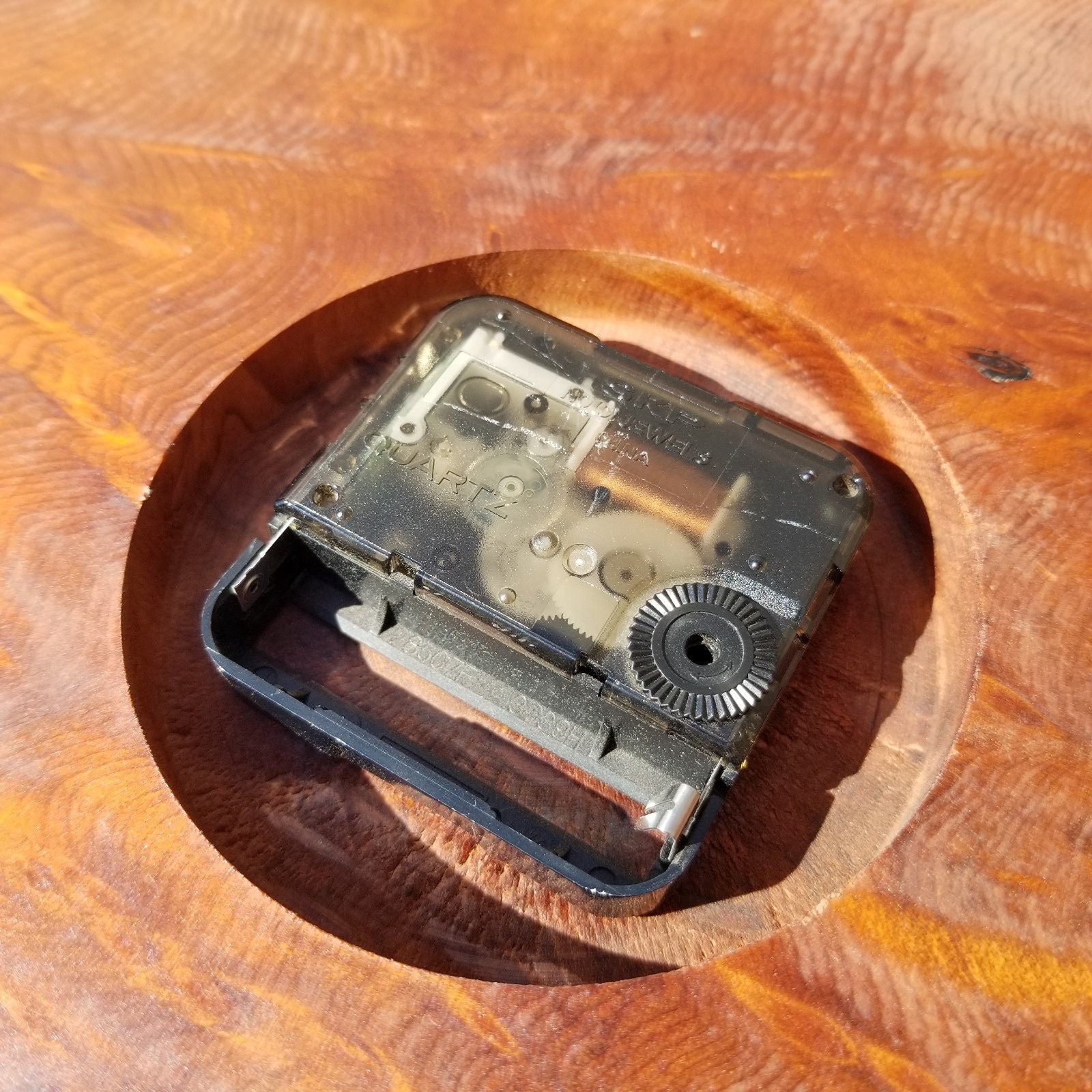 The numbers on our clocks are also made out of redwood and are inlaid INTO the clock instead of plastic brass colored numbers that are usually glued onto handmade wood clocks. This prevents the numbers from "falling off," gives the clock a much nicer presentation, and actually makes it EASIER to read the numbers! (The wood clock numbers are white in color, but are still from a Redwood tree. The white wood is the sap wood part of the tree.