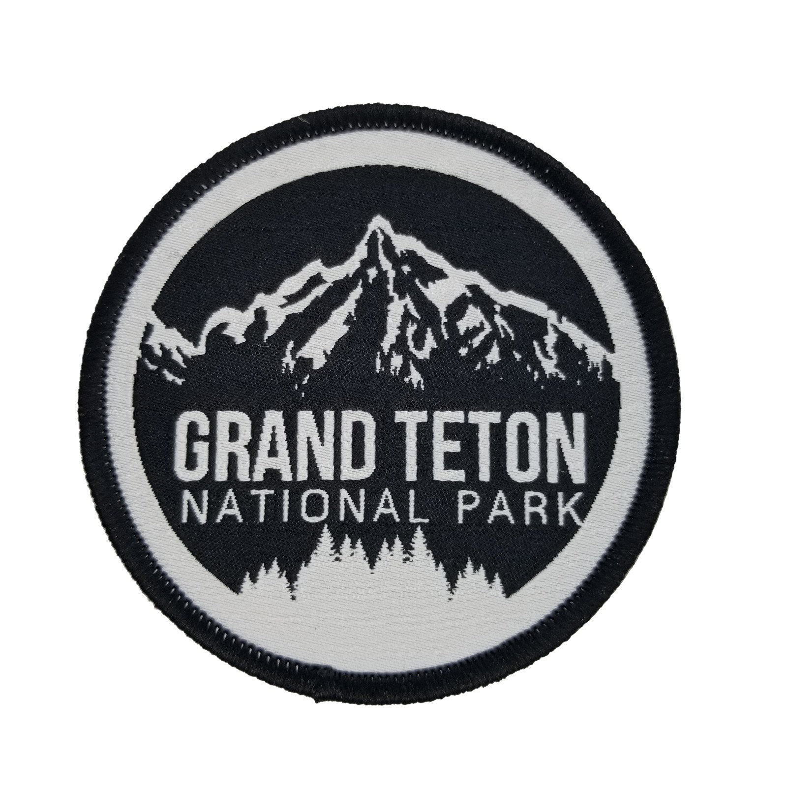 Wyoming State Patch or Applique. Text says Grand Teton National Park and features trees and mountains.