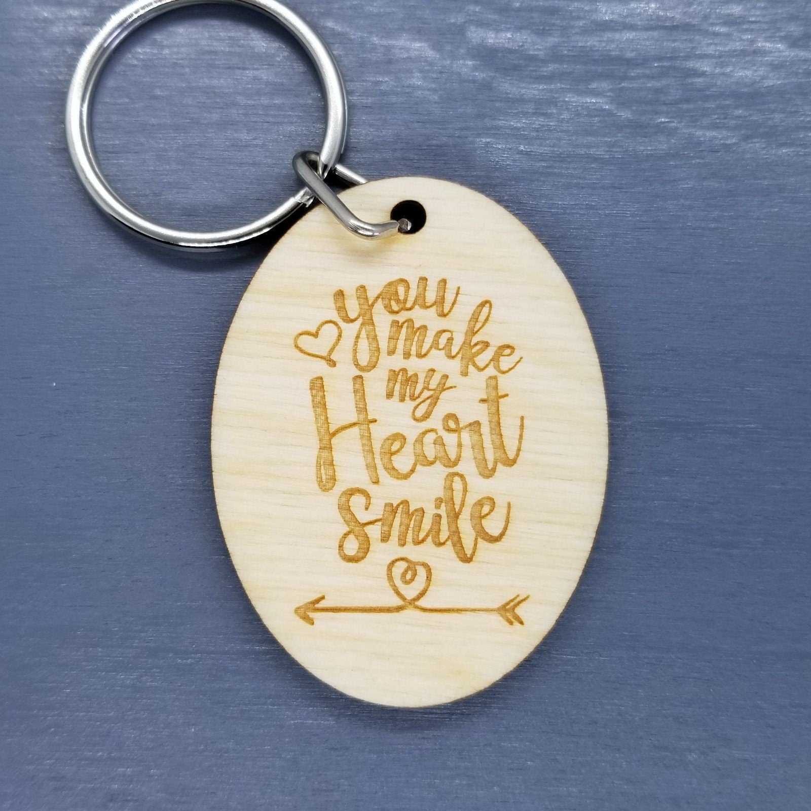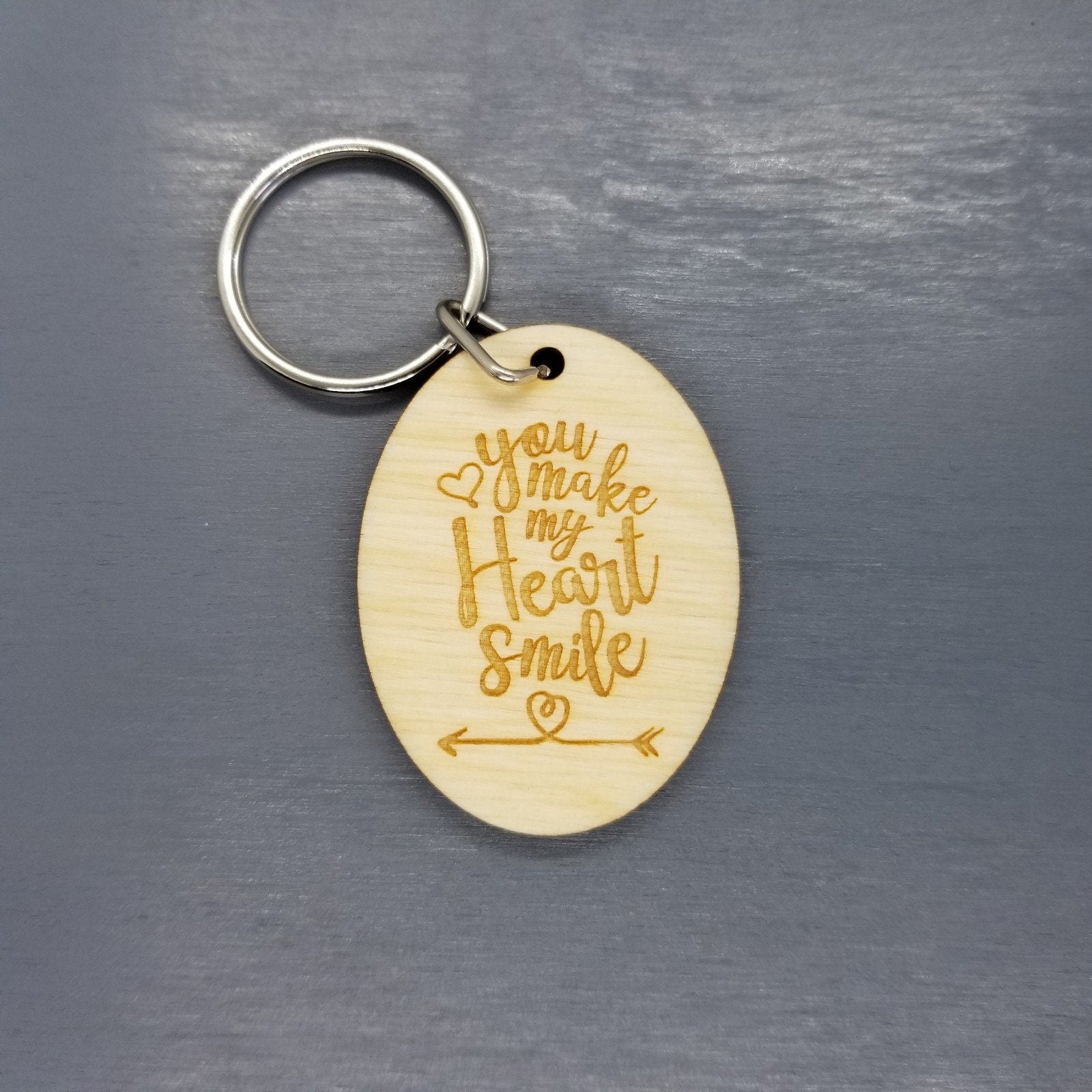 You Make My Heart Smile Wood Keychain Keyring Gift - Key Chain Key Tag Love Gift Valentines Day Gift Anniversary Gift